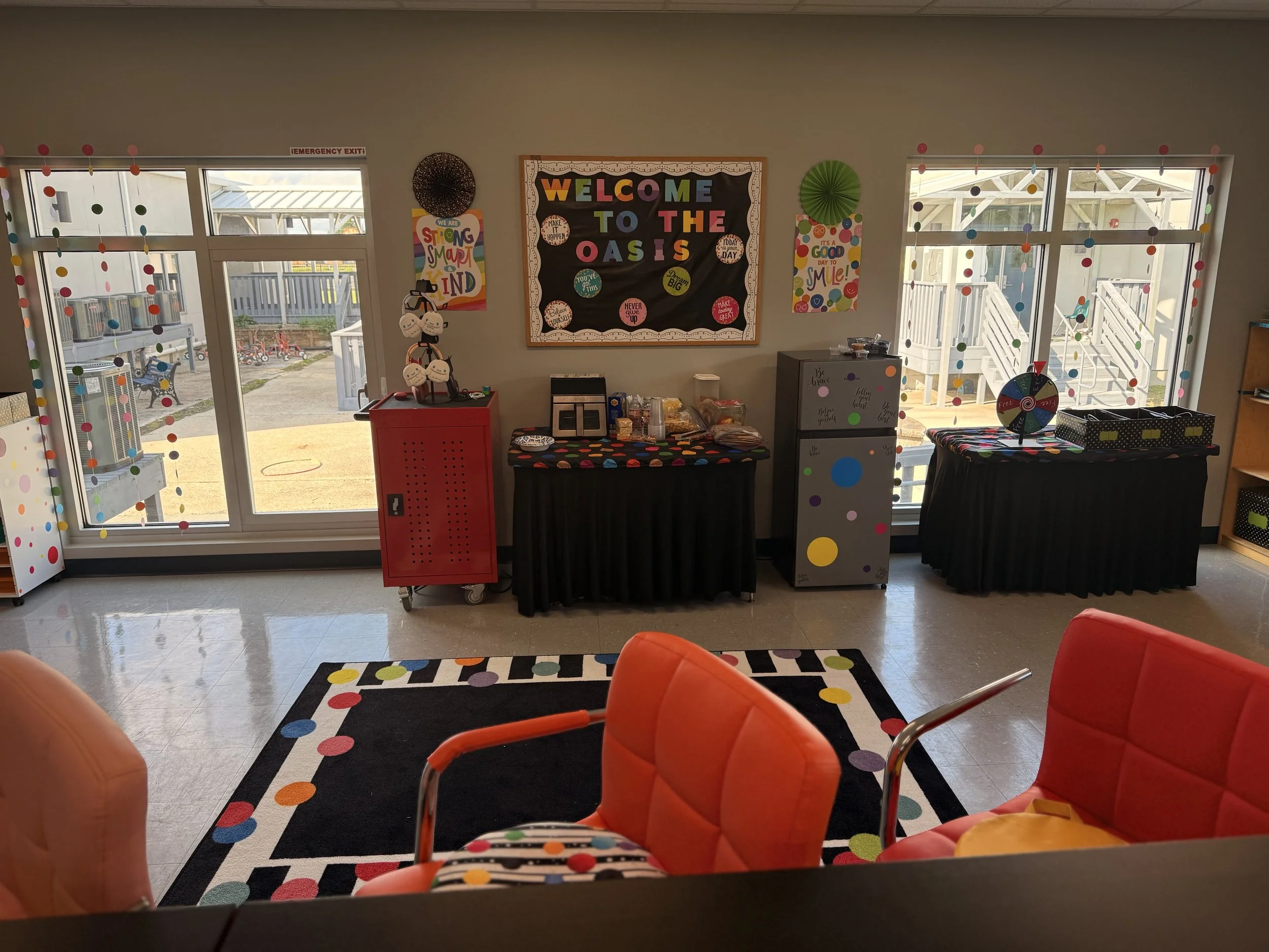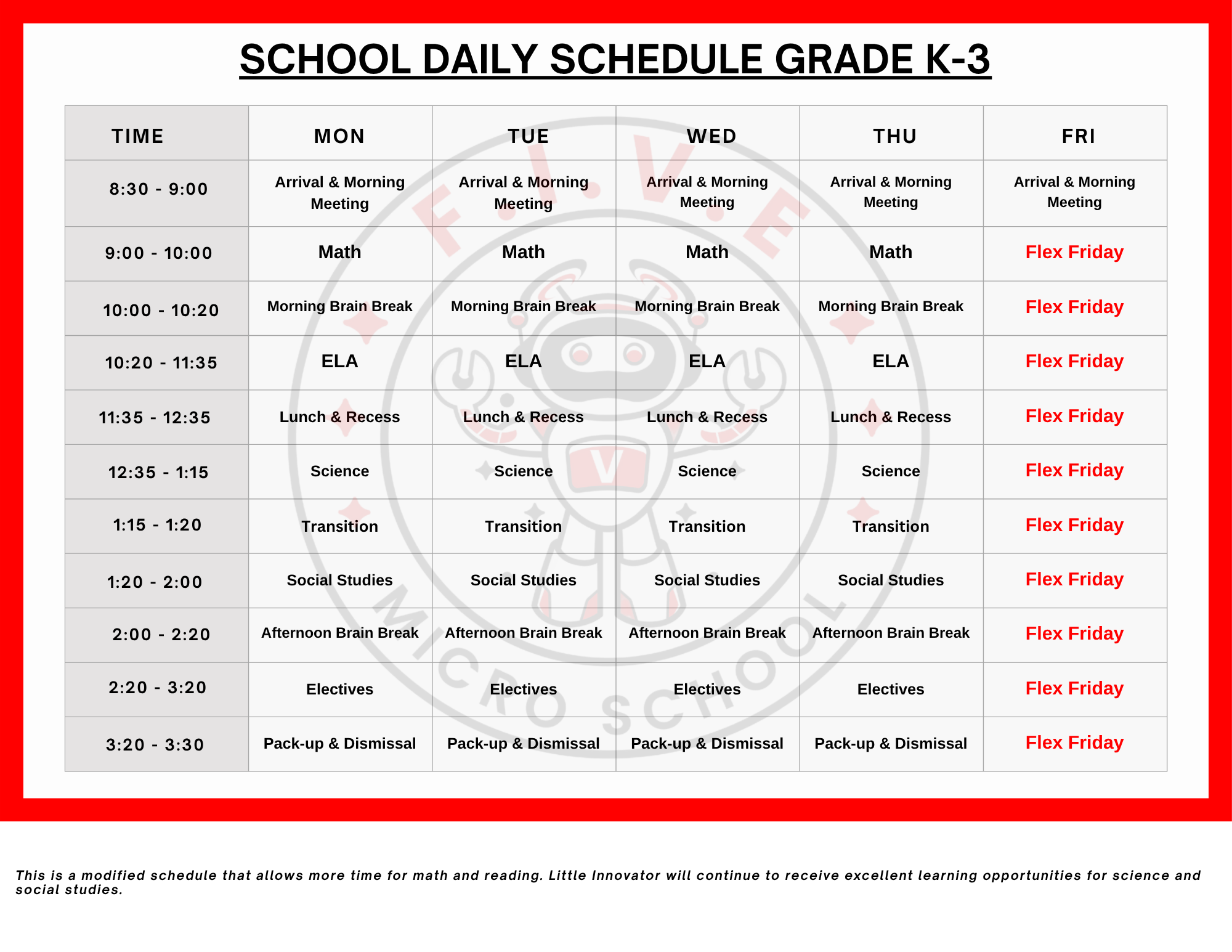 On Fridays, students may show their school spirit by wearing their red FIVE Microschool t-shirt, featuring our circular logo in the center.